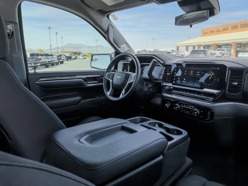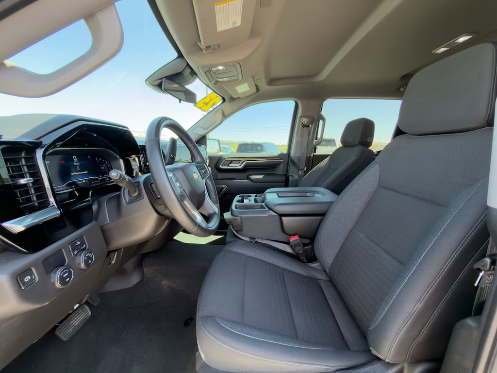 SEAT, CLOTH REAR WITH STORAGE PACKAGE 60/40 folding bench for Crew Cab models, includes seatback storage on left and right side, center fold out armrest with 2 cupholders, (includes child seat top tether anchor) , THEFT-DETERRENT SYSTEM, UNAUTHORIZED ENTRY, SUMMIT WHITE, SEATS, FRONT 40/20/40 SPLIT-BENCH with covered armrest storage and under-seat storage (lockable) (STD), REMOTE VEHICLE STARTER SYSTEM, REAR AXLE, 3.23 RATIO, NOT EQUIPPED WITH STEERING COLUMN LOCK, SEE DEALER FOR DETAILS, LT PREFERRED EQUIPMENT GROUP includes Standard Equipment, LPO, BLACK BOWTIE EMBLEM, FRONT (dealer-installed) When ordered with (QK2) Multi-Flex tailgate, will include Black tailgate bowtie.), JET BLACK, CLOTH SEAT TRIM.